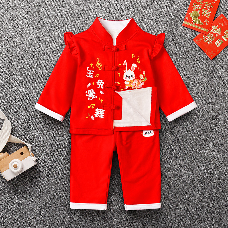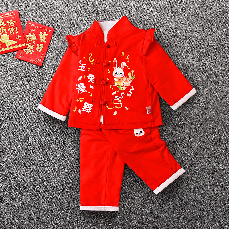 婴儿过年拜年衣服女宝宝喜庆套装 女童 女孩一周岁宴礼服抓周秋冬季