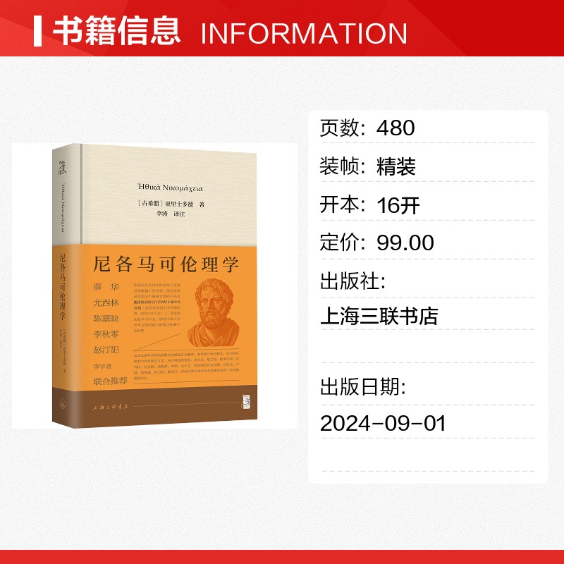 著 李涛 图书籍 古希腊 上海三联书店 新华书店正版 亚里士多德 伦理学社科 尼各马可伦理学 译