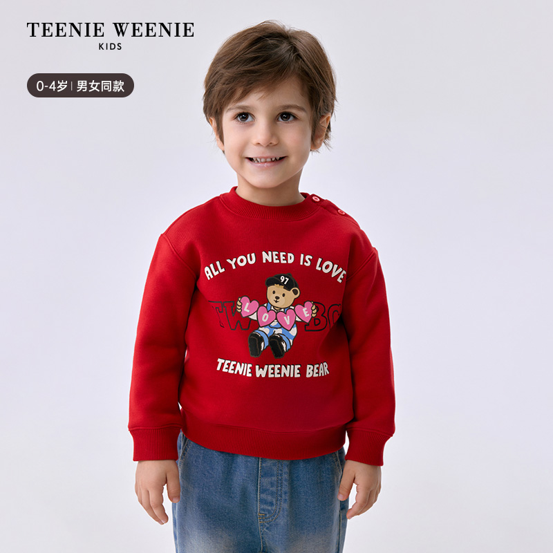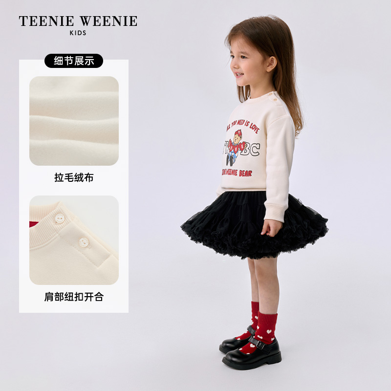 新款 25年款 男女宝肩开扣印花加绒卫衣 Kids小熊童装 TeenieWeenie