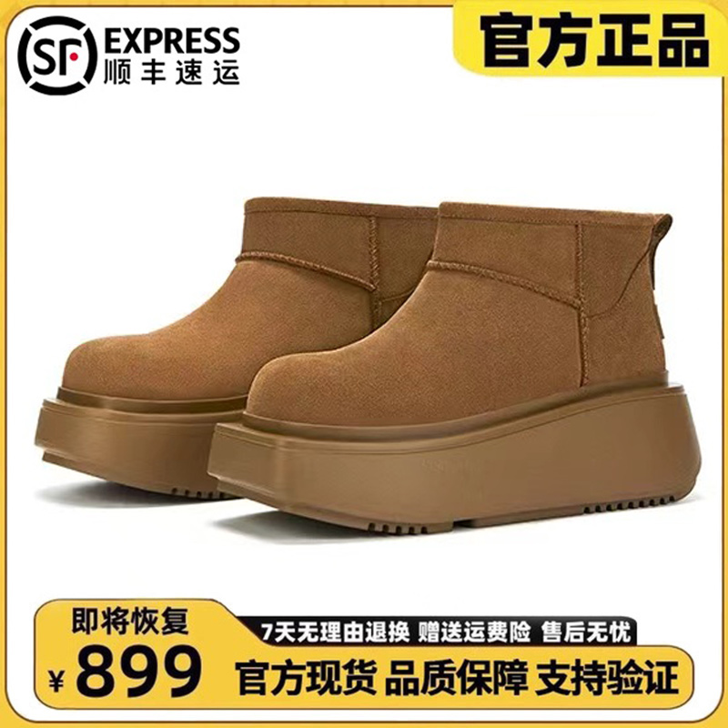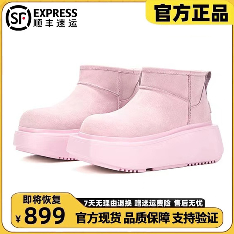 爆款 2025新款 厚底方头套筒棉靴潮 圆方不对称雪地靴女冬季 官方正品