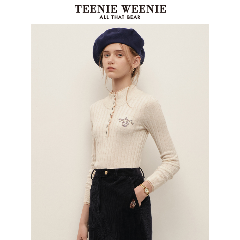 纹全羊毛套头针织衫 枫竺智性风格 女秋冬内搭毛衣 假两件Polo领