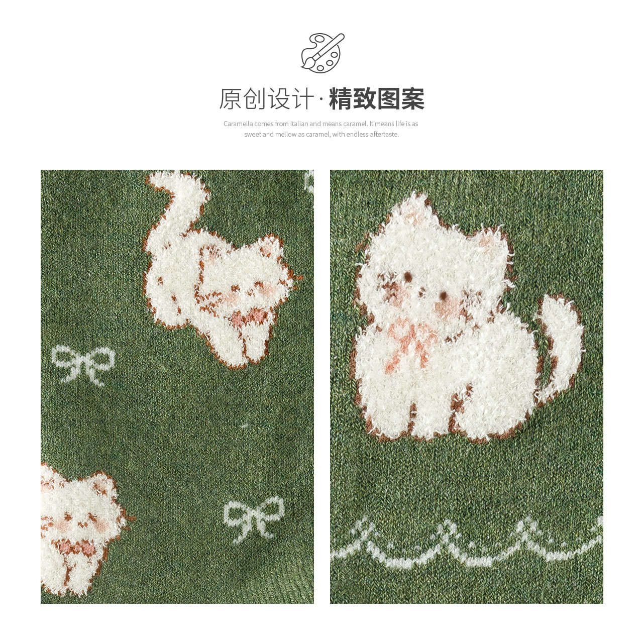 少女绿色女羊毛袜女士中筒袜保暖加厚睡眠袜秋冬新款 袜子可爱女袜