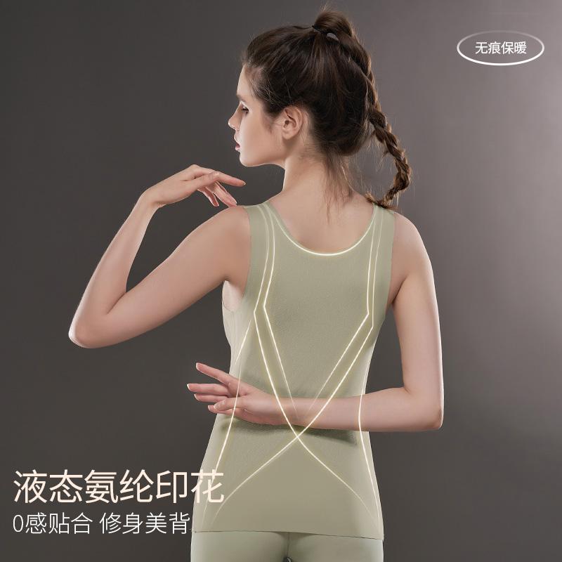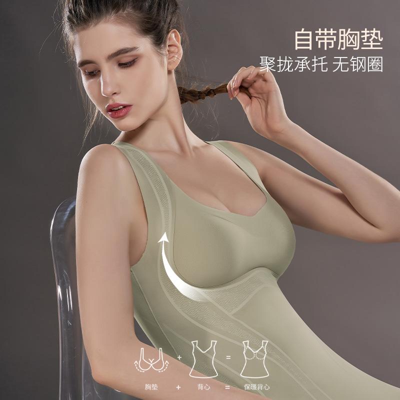 猫人保暖背心女带胸垫一体桑蚕丝打底内衣加绒加厚贴身内搭秋冬