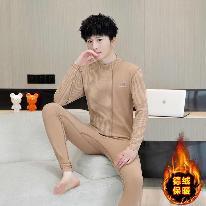 女圆领抗静电厚棉半高领秋冬 套装 三枪保暖内衣男士 纯棉秋衣秋裤