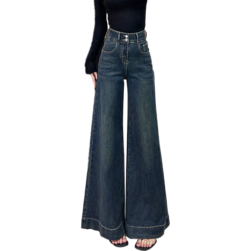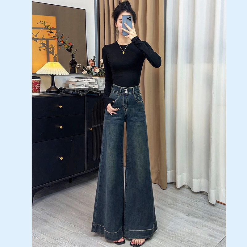 宽松显瘦百搭直筒阔腿微喇裤 女秋冬2025新款 高街复古蓝牛仔裤 美式
