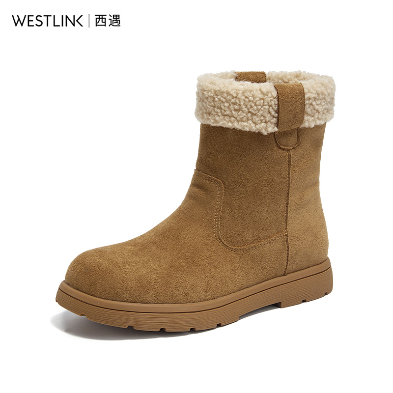 西遇加绒勃肯鞋 东北雪地靴皮毛一体短筒防滑毛毛棉靴 女2025冬新款
