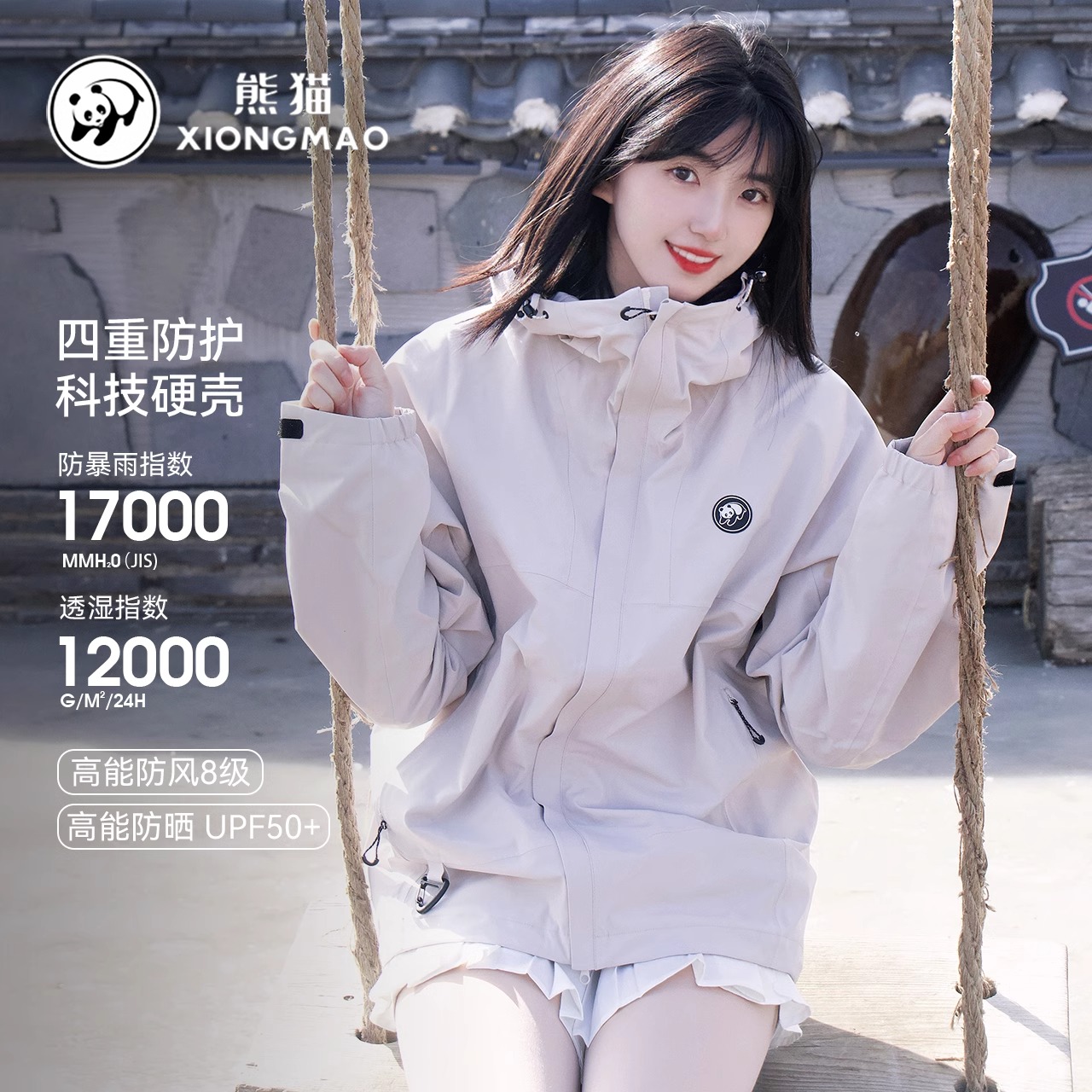 骆驼熊猫冲锋衣女2024新款 防水防风单层硬壳户外登山服情侣外套男