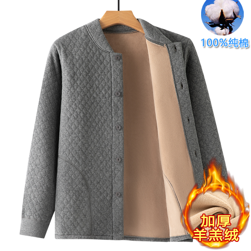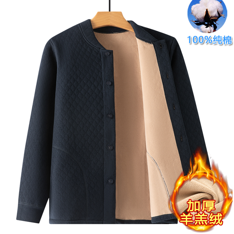 保暖内衣加绒加厚羊羔绒秋衣毛衣爸爸冬装 纯棉冬季 中老年人男开衫