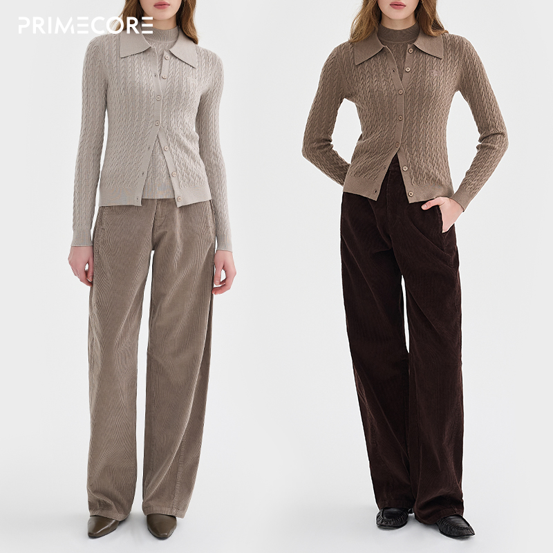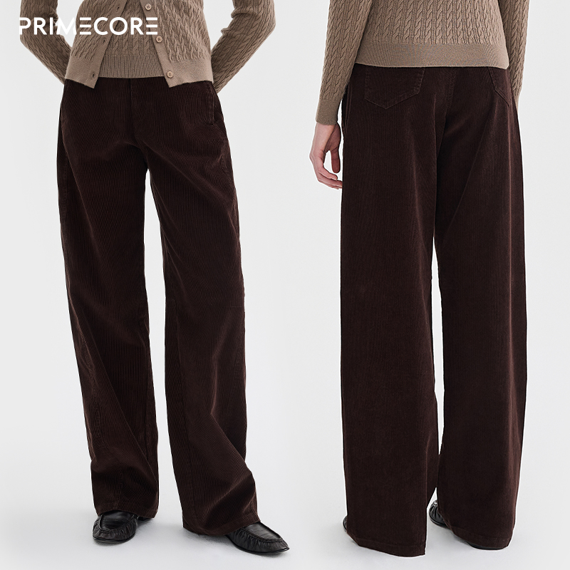 女 显瘦宽松老钱风拖地裤 PRIMECORE新款 加厚微茧形灯芯绒休闲长裤