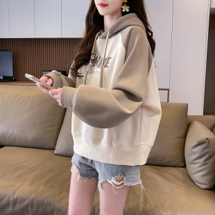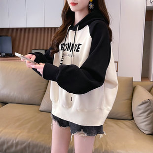宽松加绒加厚插肩袖 韩版 连帽上衣外套 2025新款 小个子卫衣女秋冬季