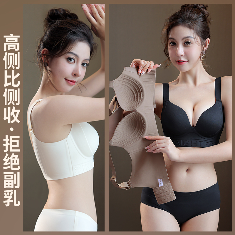 调整型大胸显小胸内衣女士收副乳防下垂无痕胖mm大码 文胸罩 薄款