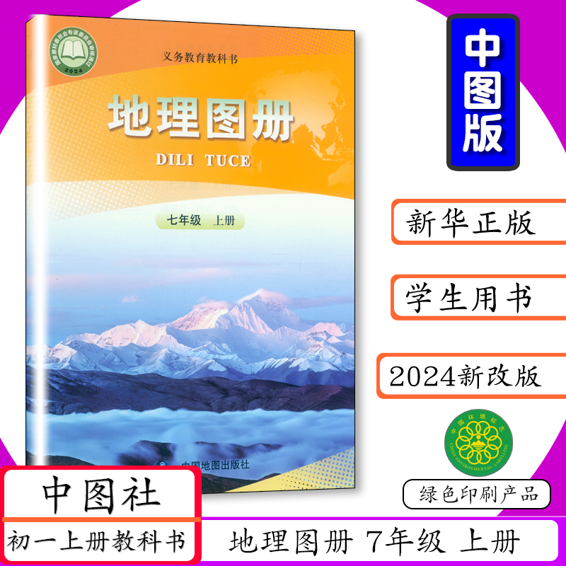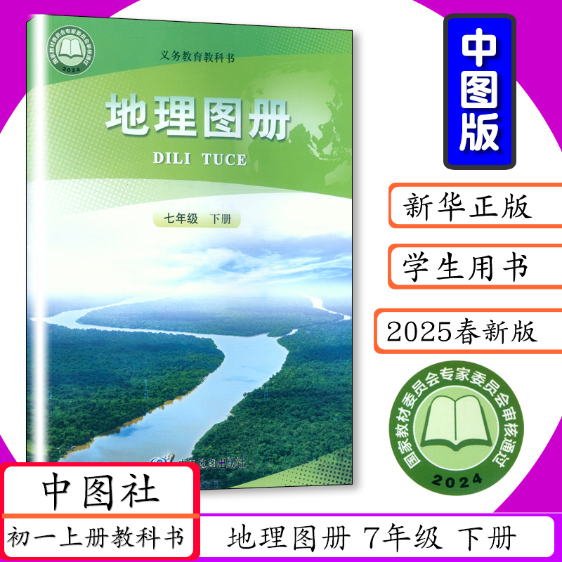 初中一年级初中课七年级上下册中学教材中国地图出版 中图社初中地理图册7年级上下册配人教版 社义务教育教科书 2025新改版
