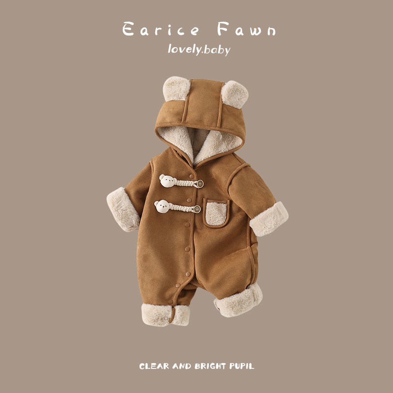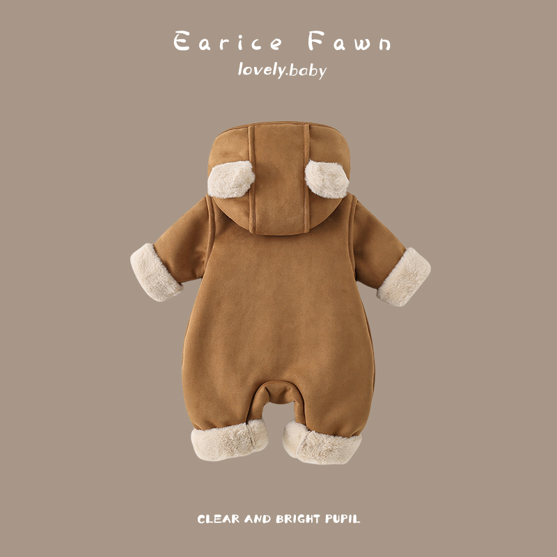 初生婴儿衣服冬季 加绒棉衣宝宝加厚夹棉连体衣可爱超萌外穿爬爬服