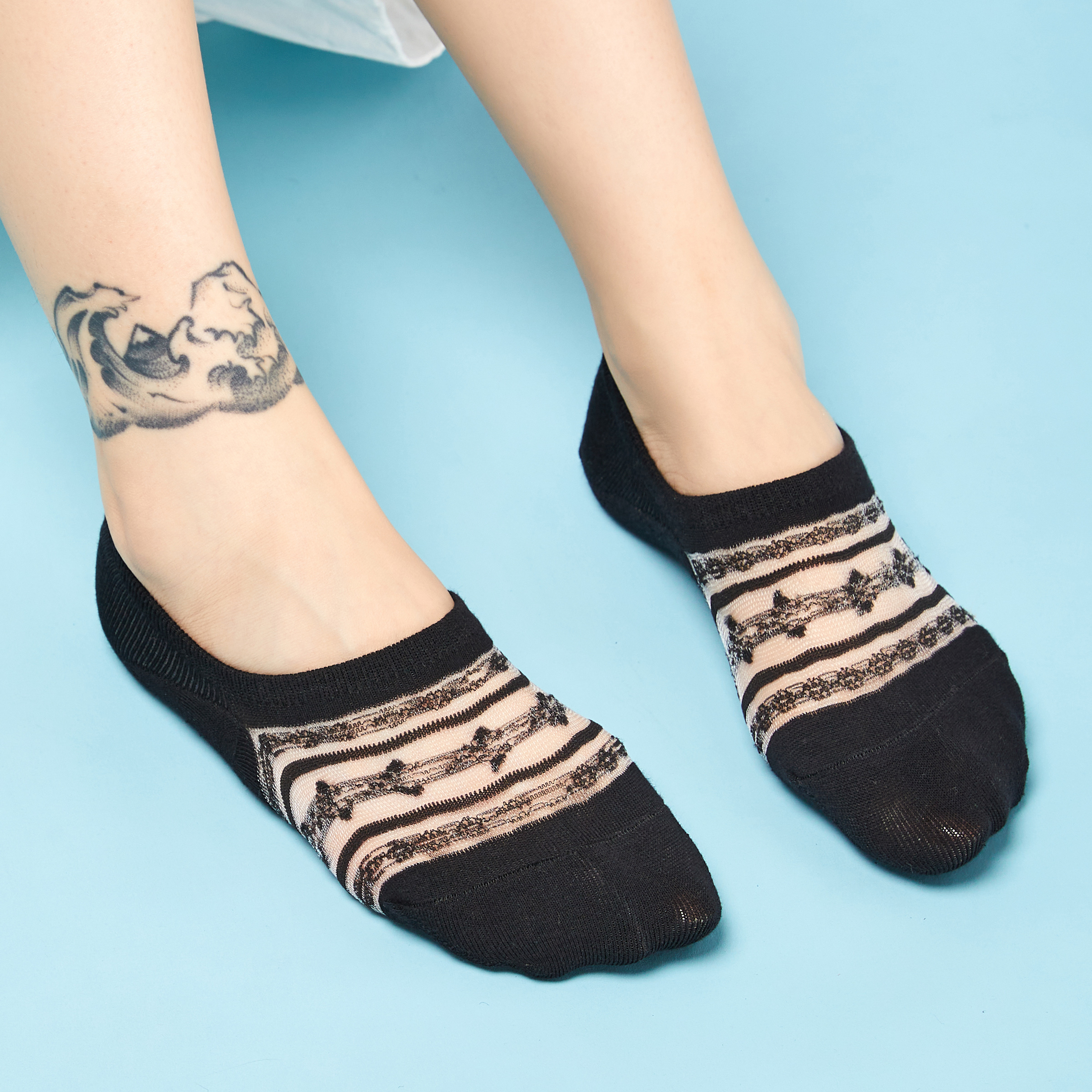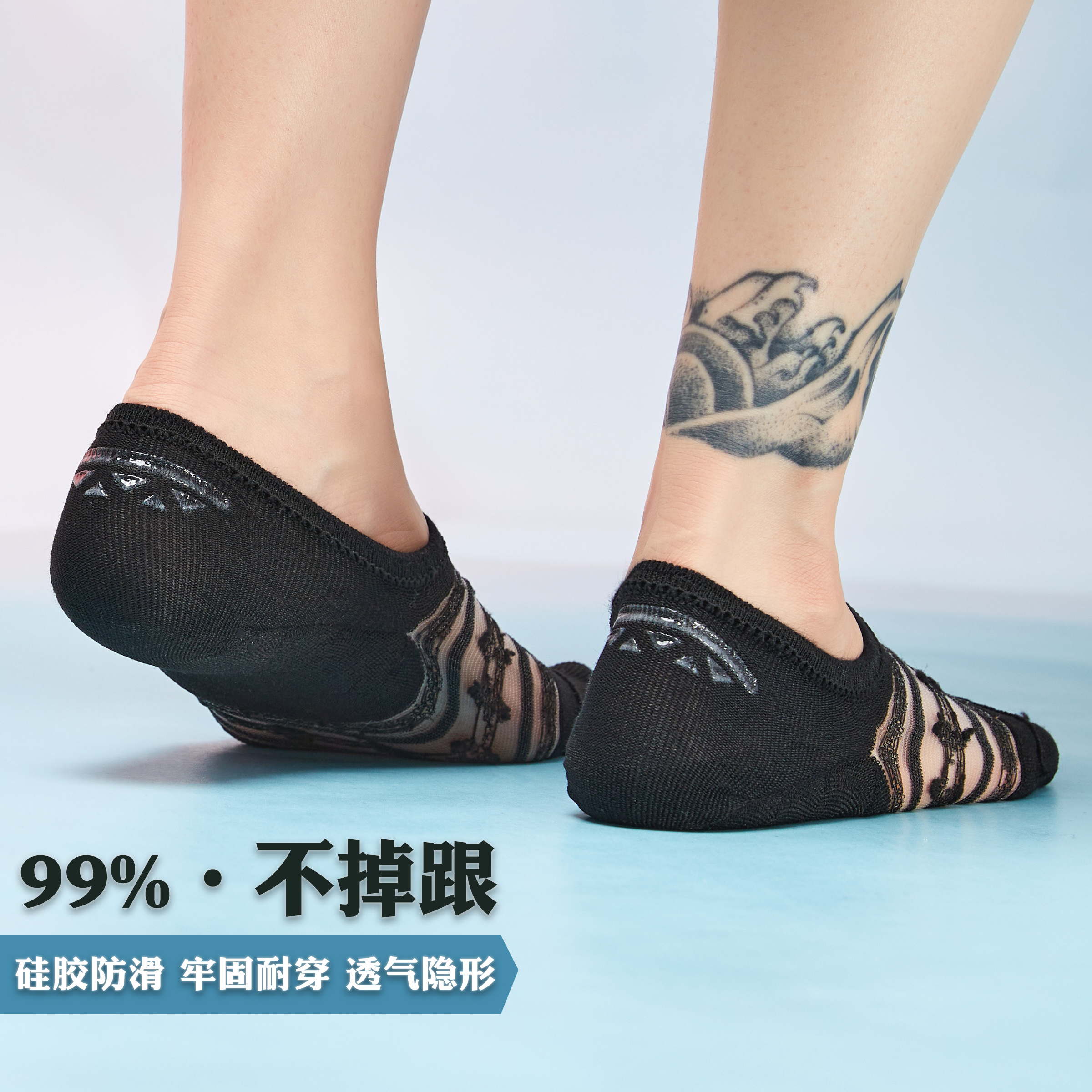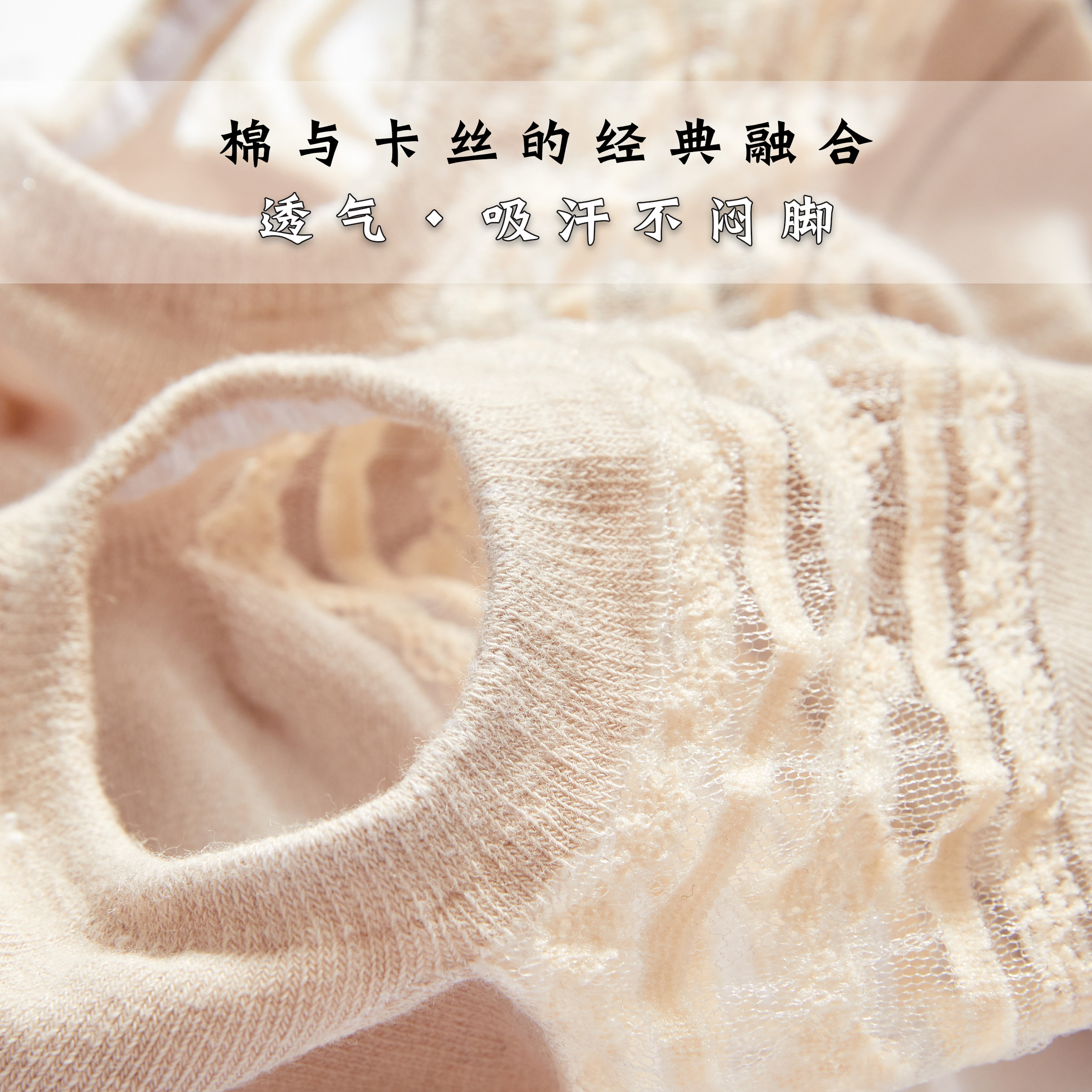 4双 女船袜网纱透气隐形袜卡丝短袜棉质吸汗透气不掉跟浅口袜 夏季
