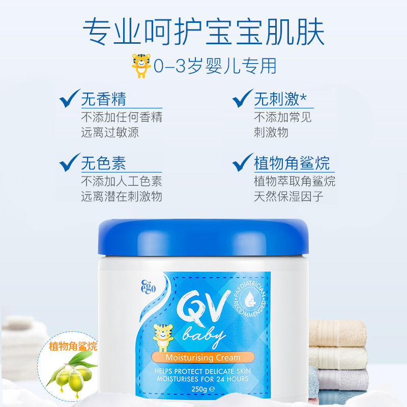 250g 预售 霜舒缓干痒红补水小老虎罐装 QV宝宝滋润面霜保湿 Ego