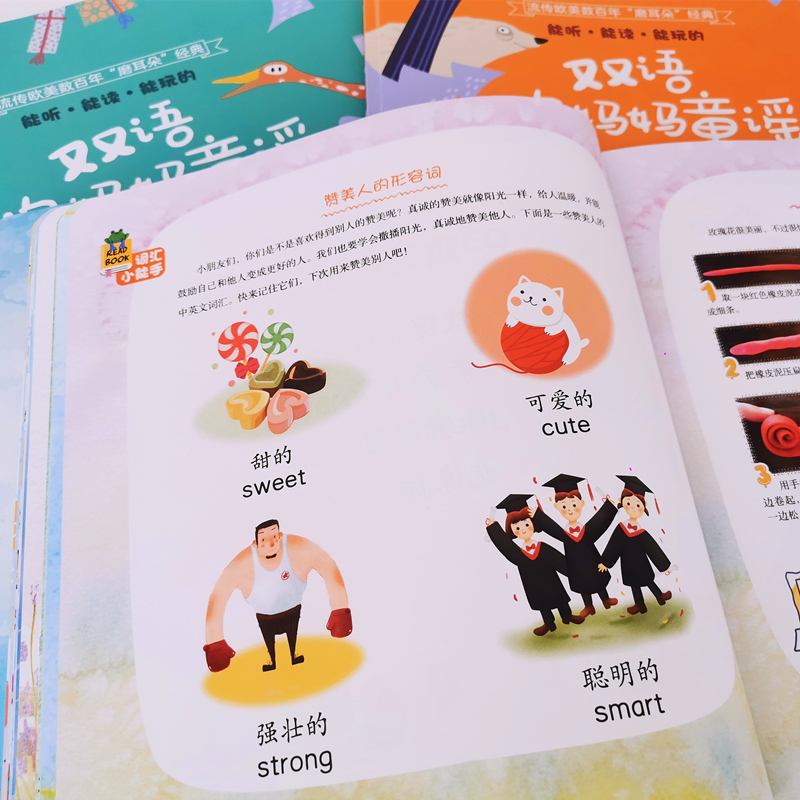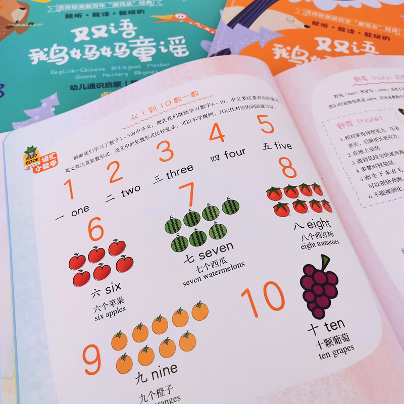 双语音频配童谣讲解 地道美语发音 双点读版 能听能读能玩 少儿英语 幼儿通识启蒙 英语启蒙 分级阅读书籍 双语鹅妈妈童谣