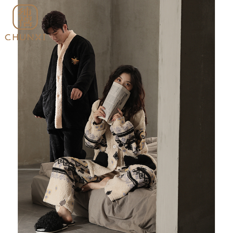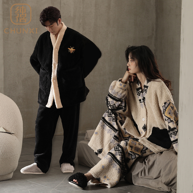 女款 家居服套装 加厚大码 秋冬款 法兰绒男士 芬腾珊瑚绒情侣睡衣冬季