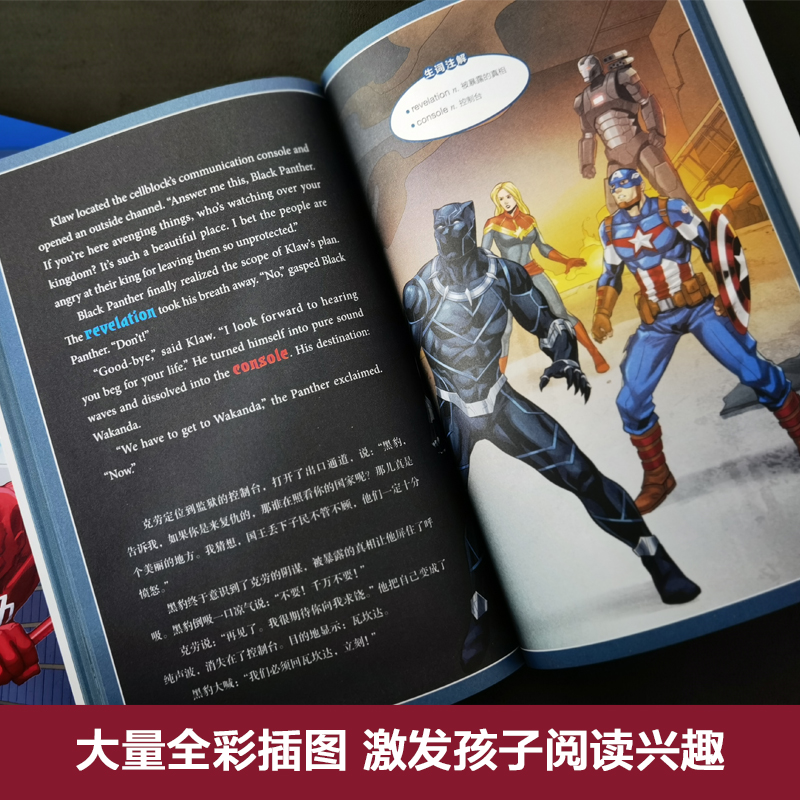 美国队长黑豹 蜘蛛侠漫画书 蜘蛛侠 钢铁侠 12岁儿童读物 复仇者联盟书籍双语阅读 漫威宇宙 漫威超级英雄双语故事全5册 正版