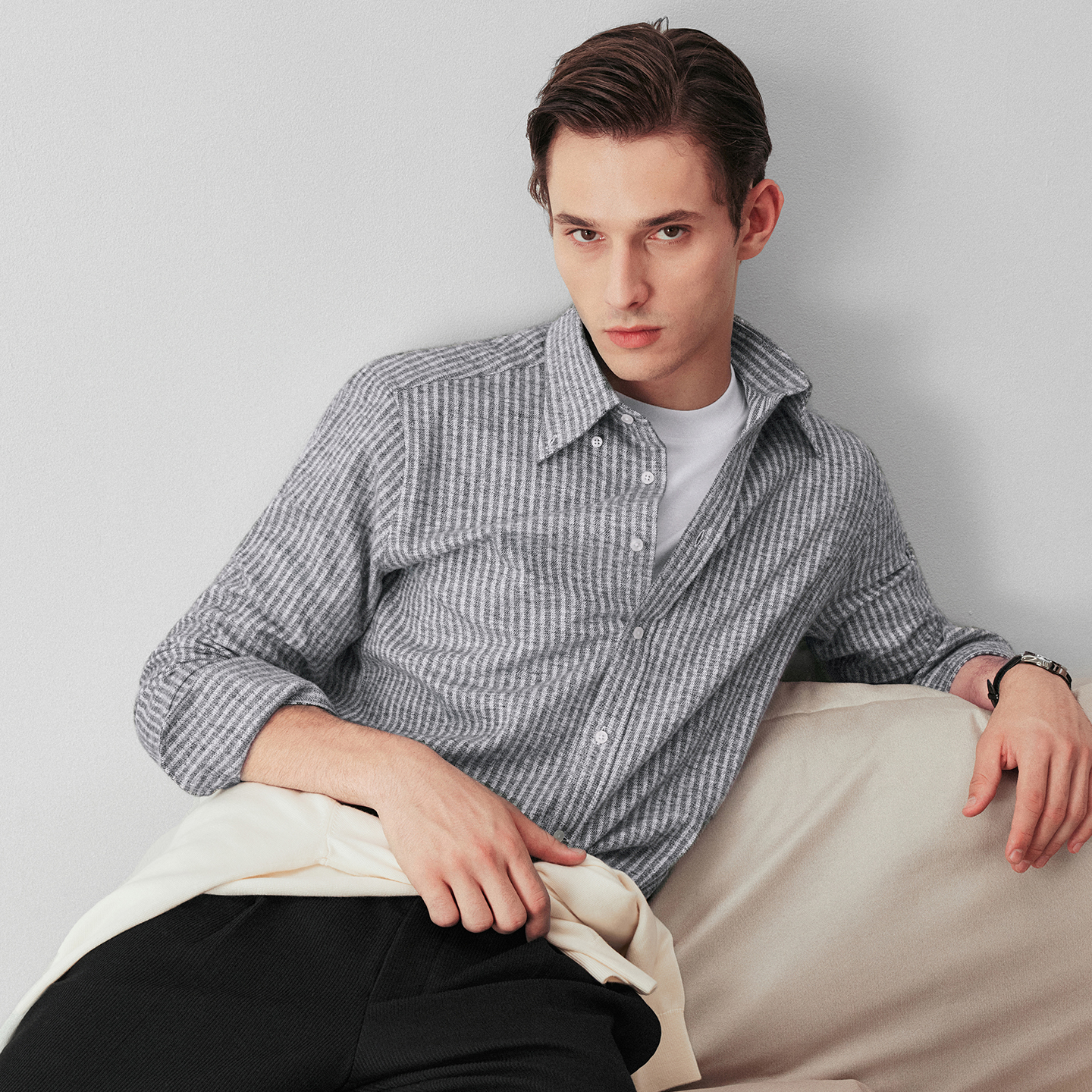 柏品TESTA进口纯棉法兰绒磨毛条纹衬衫 衬衣 男商务休闲高级感长袖
