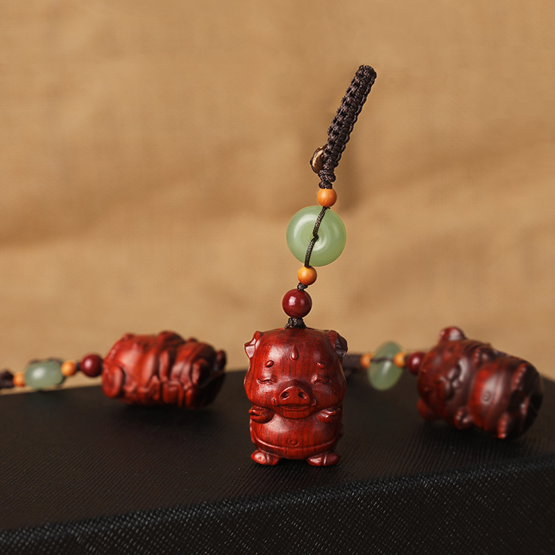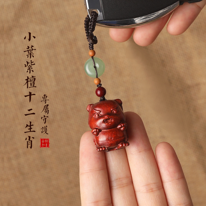 小叶紫檀本命年十二生肖汽车钥匙扣女可爱创意吊饰情侣手机链挂绳