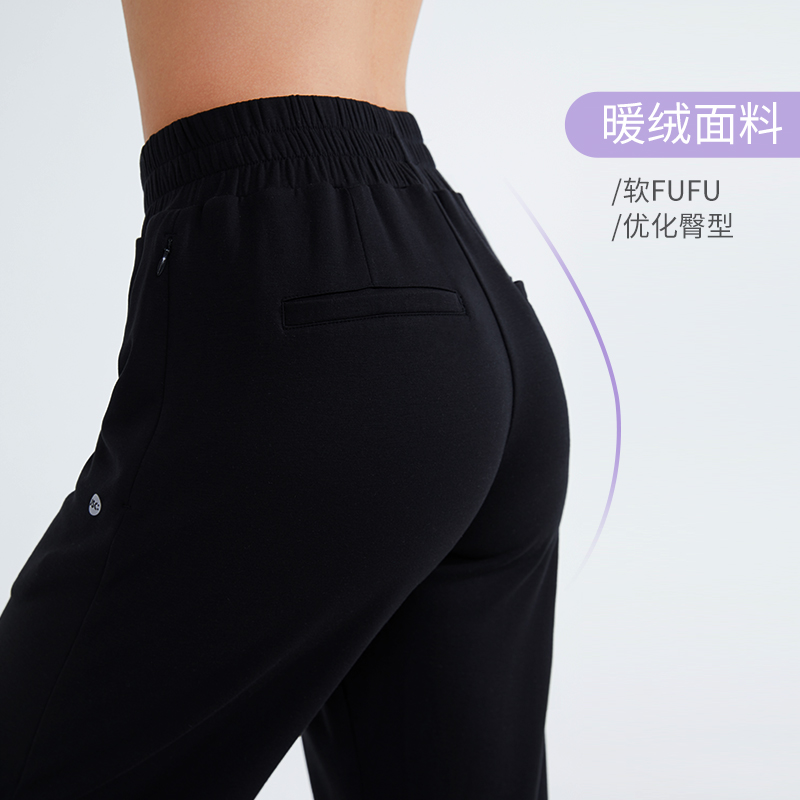 秋冬新款 女跑步运动长裤 宽松直筒拖地瑜伽健身裤 速干弹力阔腿裤