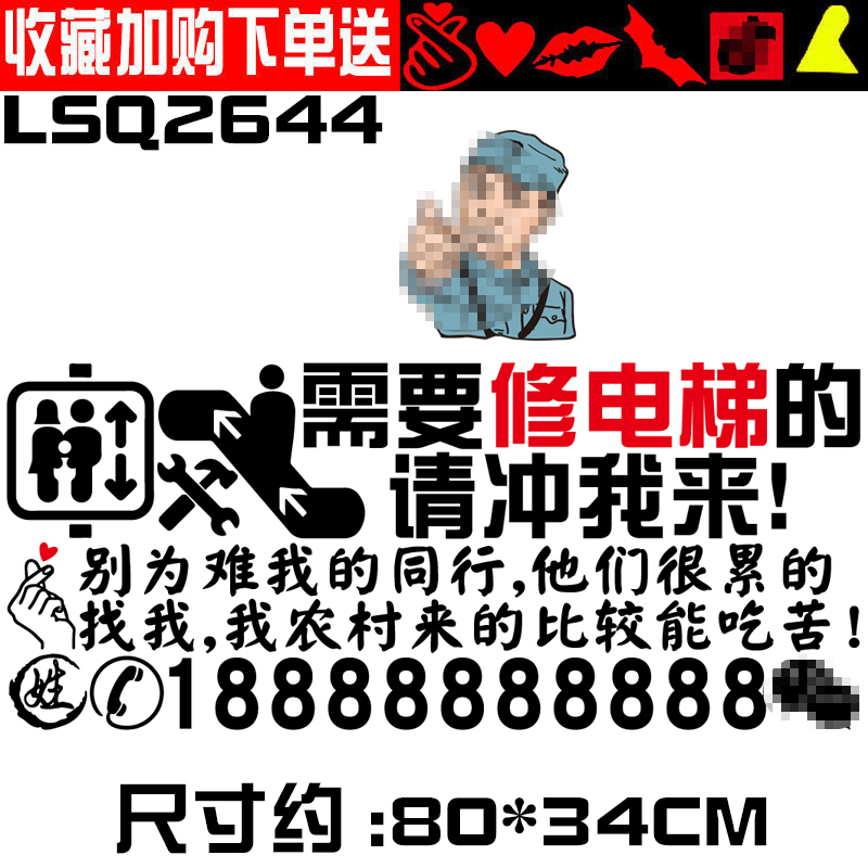 个性 网红同款 创意电梯维修广告汽车文字定制贴纸 修电梯车贴 魂速