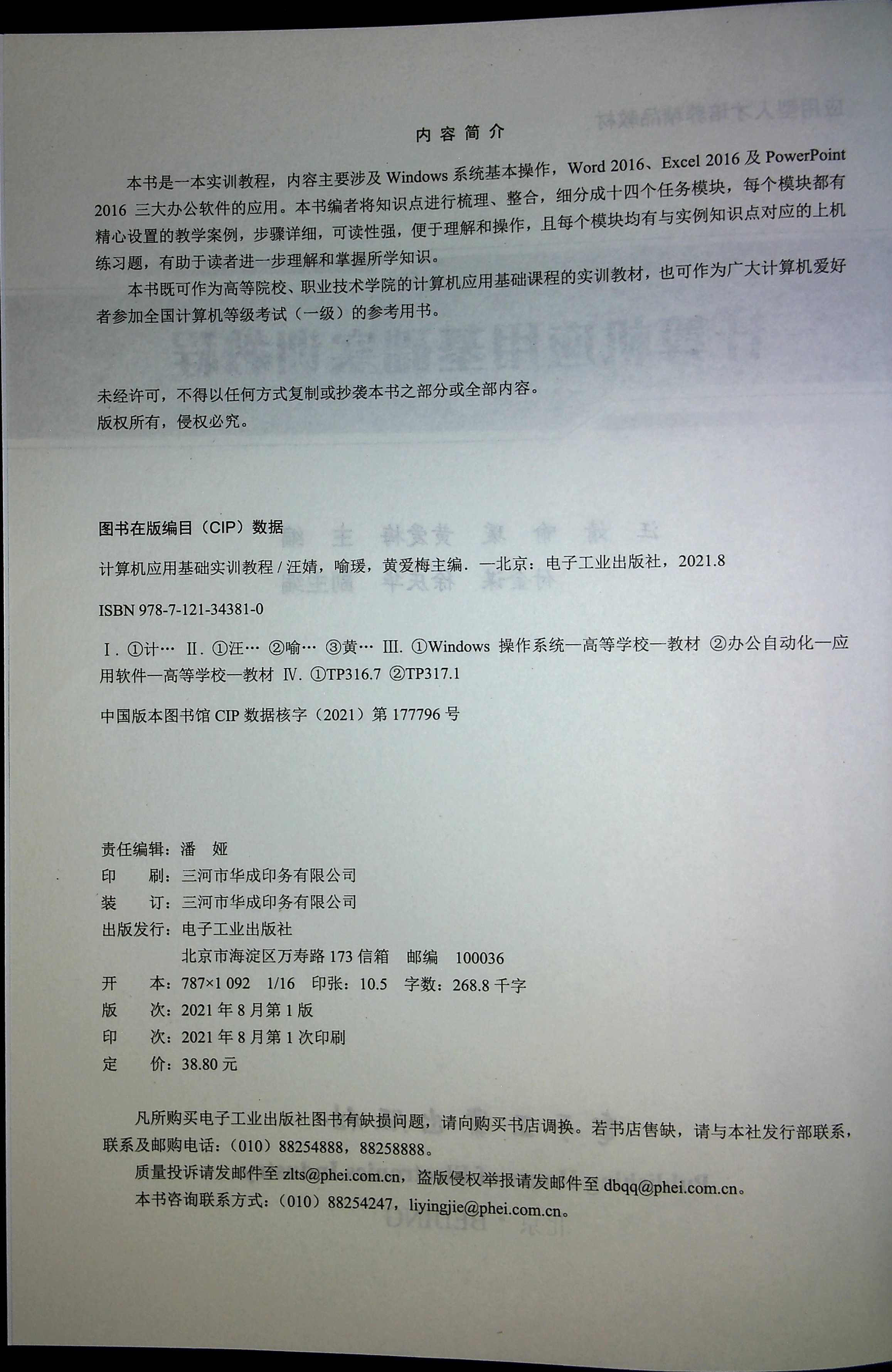 计算机应用基础实训教程 电子工业出版 汪婧 计算机应用基础课程实训教材 社 高等院校职业技术学院 官方正版