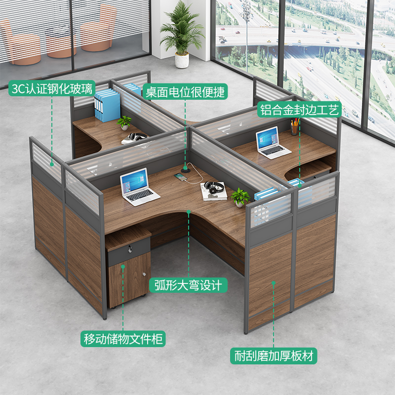 赛冠职员办公桌简约现代桌椅组合电脑4四人位屏风工作6工位家具