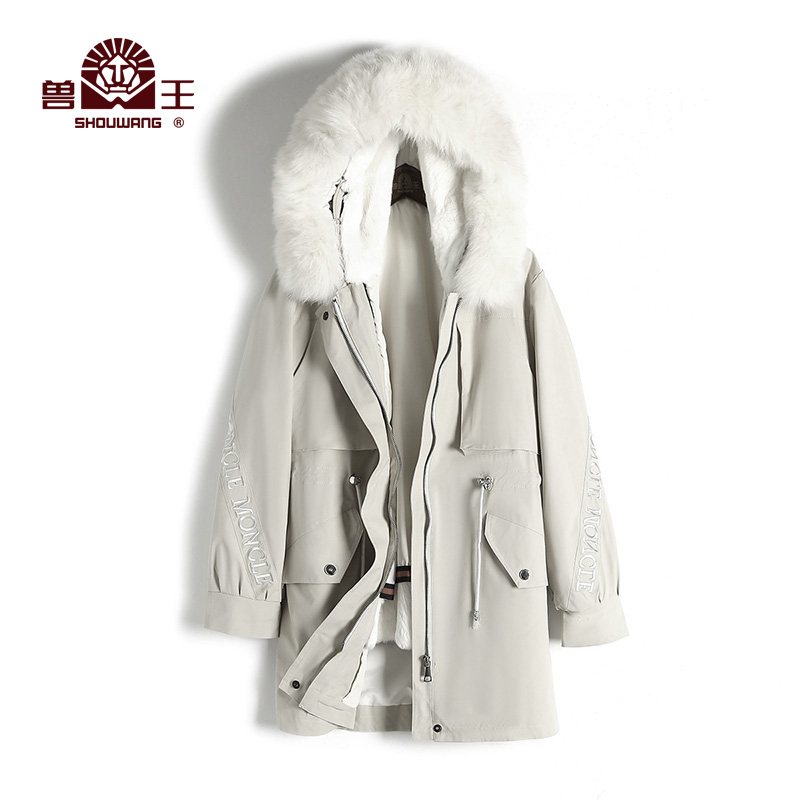 狐狸毛领连帽皮草大衣 女兔毛皮内胆派克服中长款 兽王冬季 新款