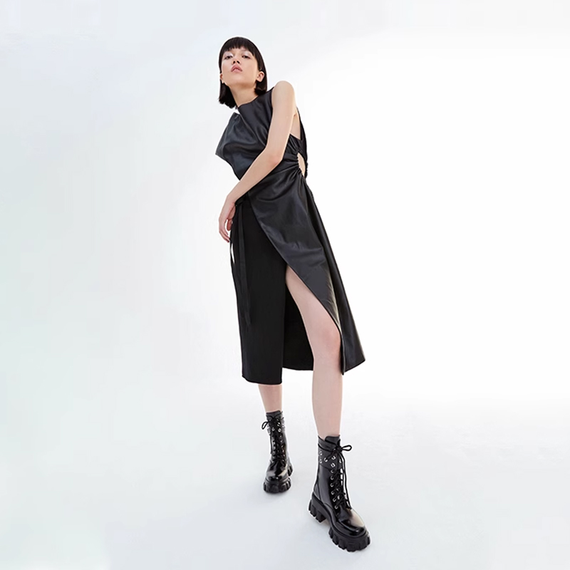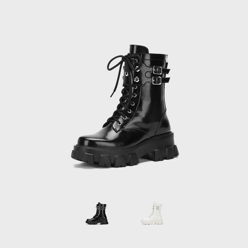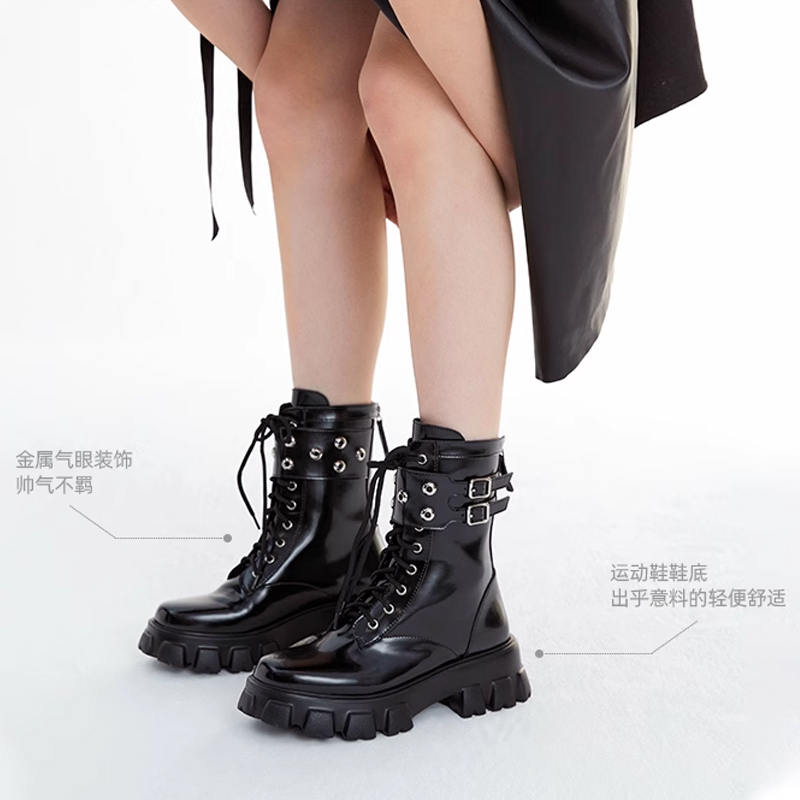 黑色增高靴子女时尚 新款 休闲皮面短靴 2025秋季 环球厚底马丁靴女款