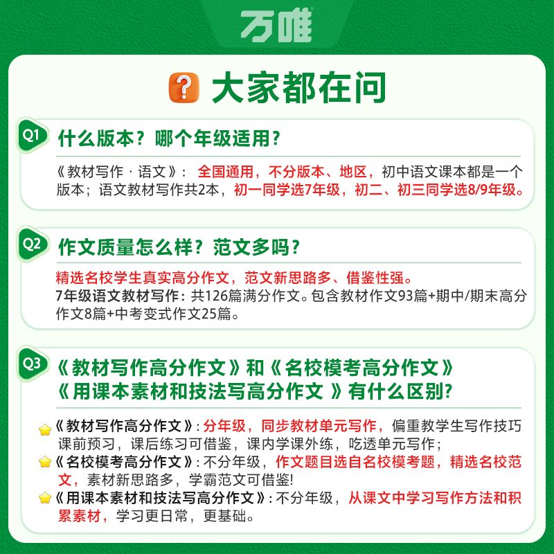 2026万唯七年级上册下册语文教材写作名校高分作文同步中考大全优秀作文书素材万能模板思维人教版 初一7初中满分作文训练万维教育
