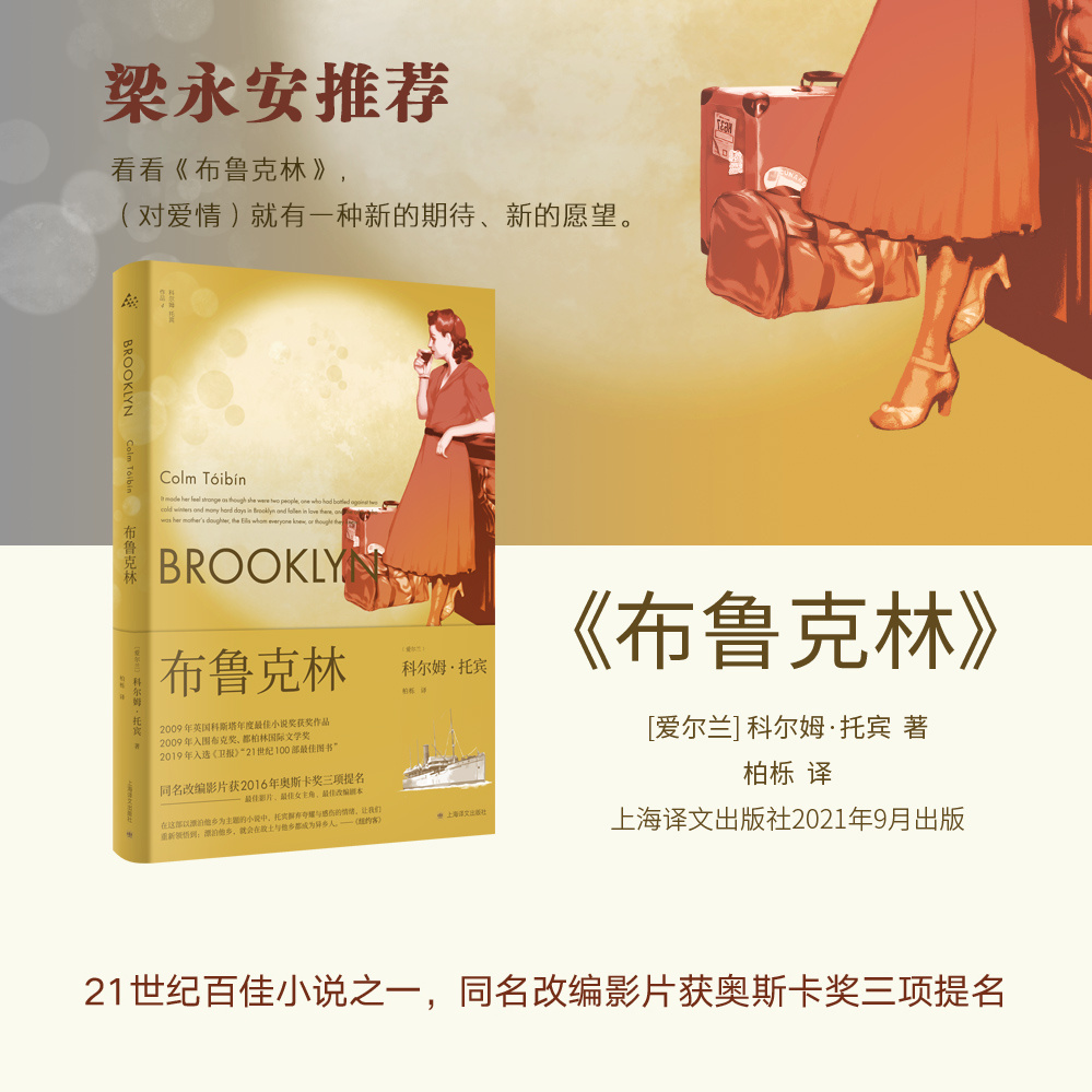 柏栎 译 上海译文出版 爱尔兰 社 同名改编影片获奥斯卡奖三项提名 科尔姆·托宾 卫报21世纪百佳图书之一 布鲁克林 梁永安推荐