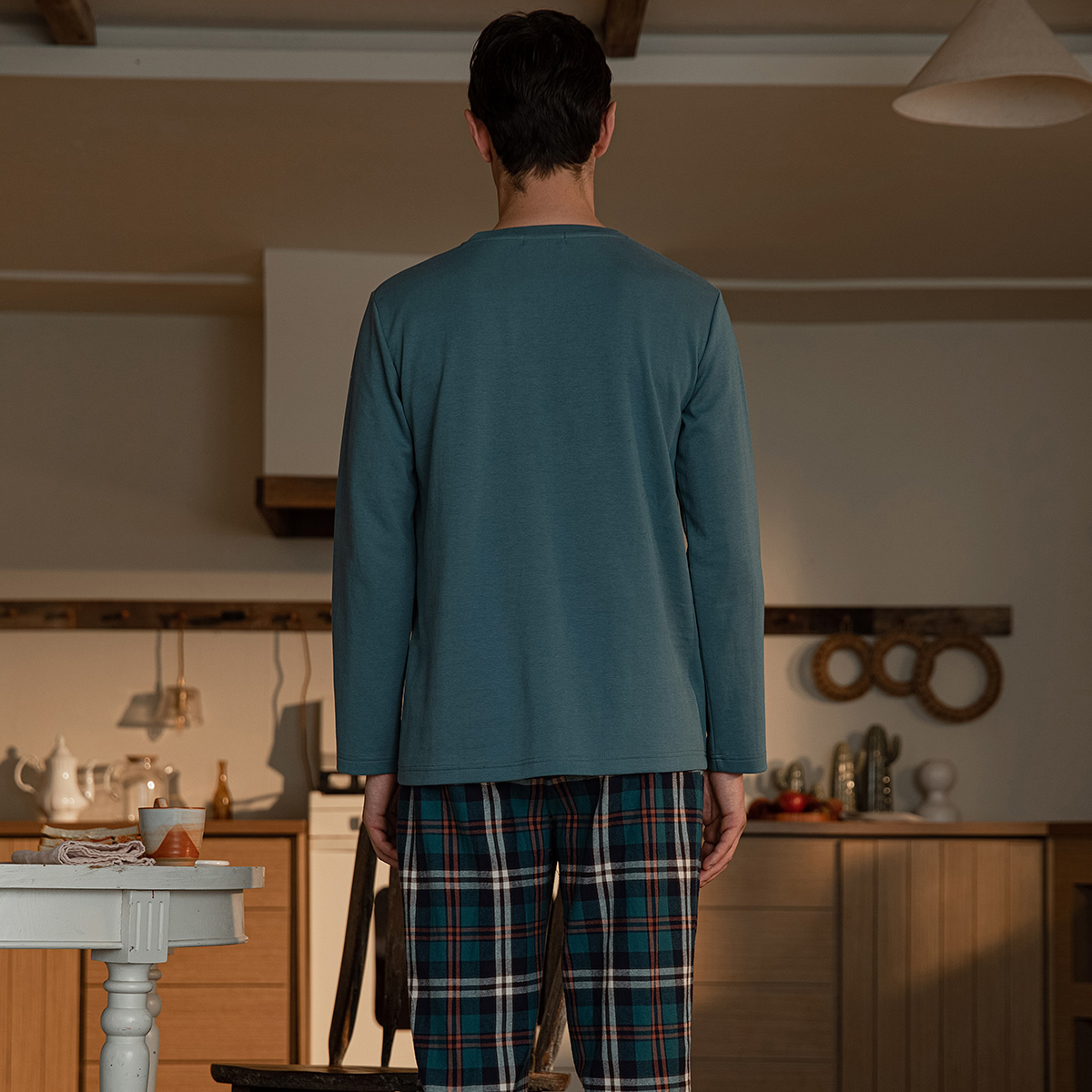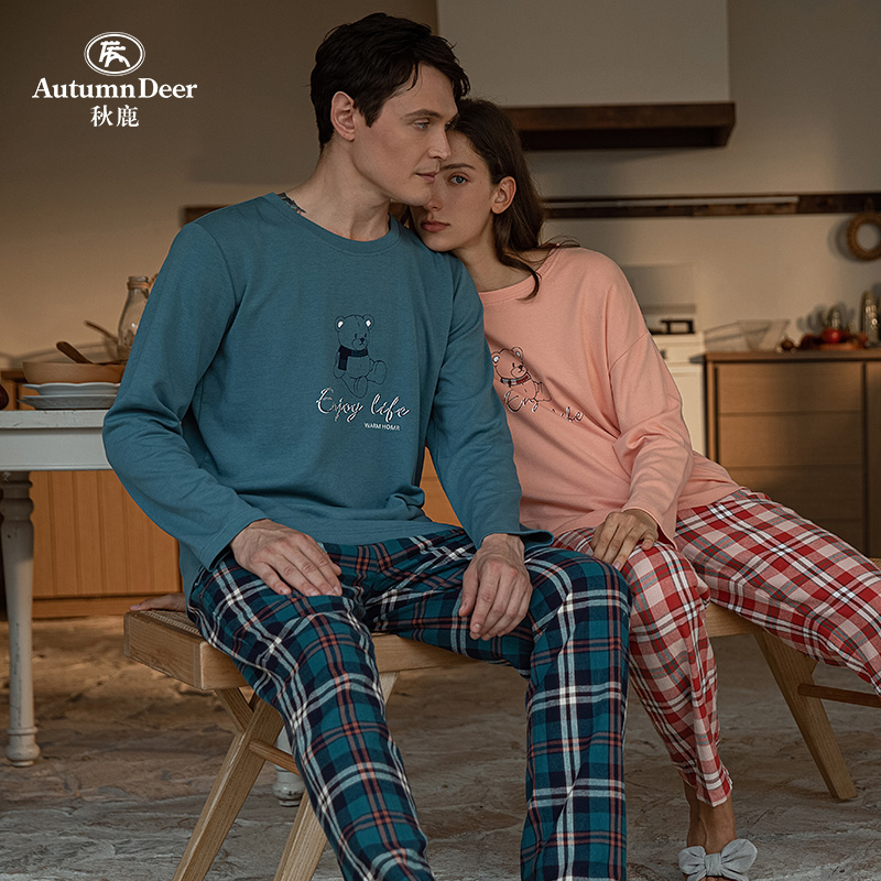 清仓仅剩大码 男士 特价 格子长裤 睡衣春秋纯棉家居服长袖 秋鹿