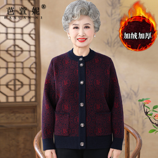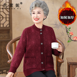 奶奶老太太加绒开衫 胖妈妈装 毛衣外套春秋冬装 中老年人女装 加大码