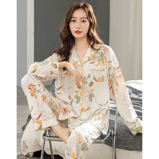 全棉2025年新款 睡衣女春秋款 秋季 女款 中年妈妈秋冬家居服 纯棉长袖
