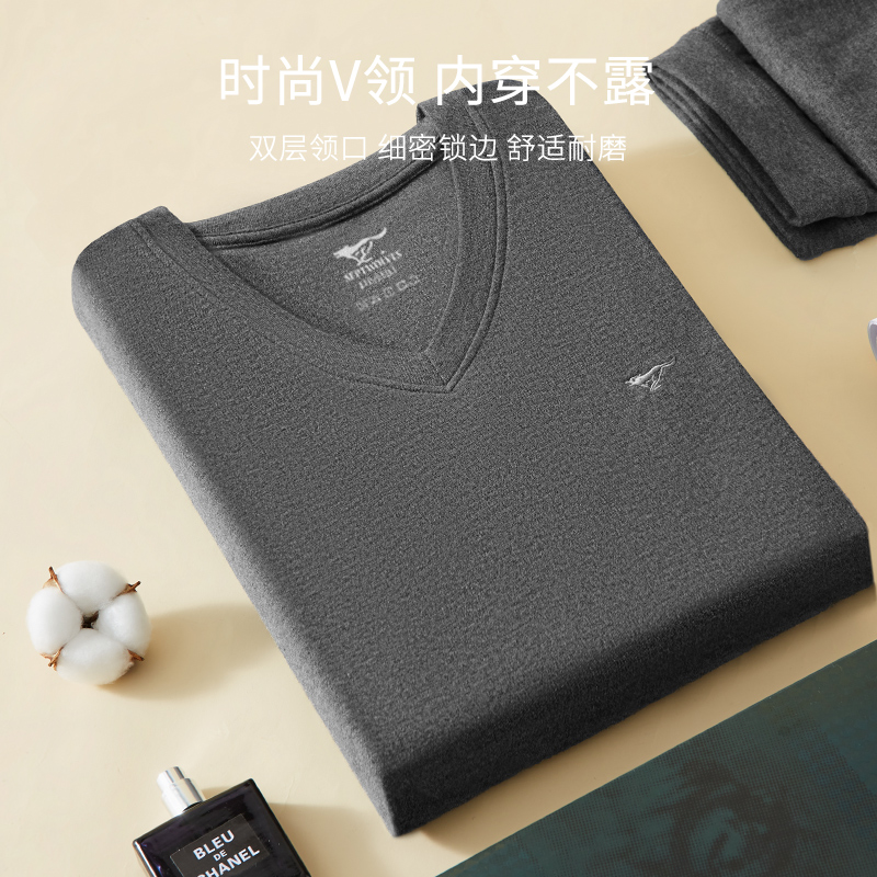 纯棉保暖内衣套装 打底全棉毛衫 V领薄款 男修身 秋衣秋裤 七匹狼男士