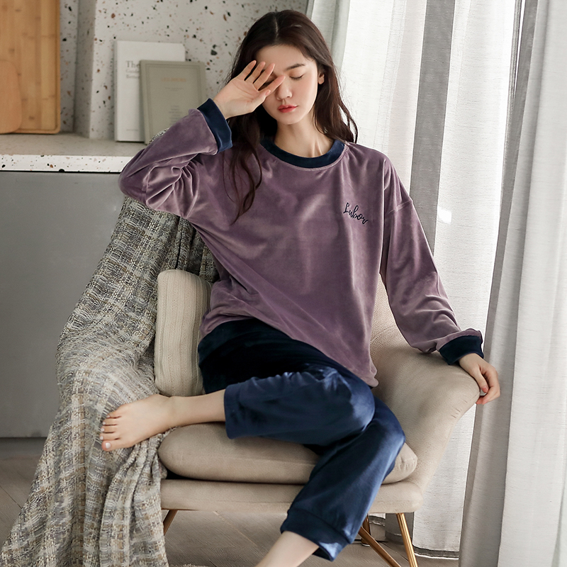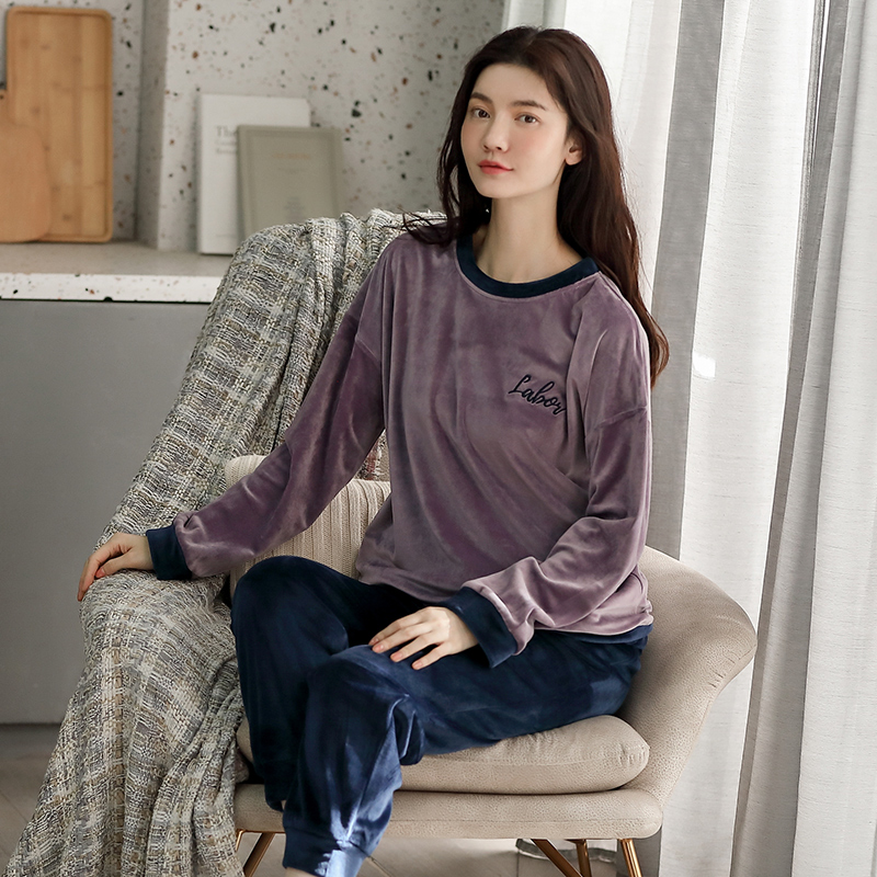 可外穿 保暖家居服套装 睡衣女秋冬季 珊瑚绒加绒加厚春秋海岛绒薄款