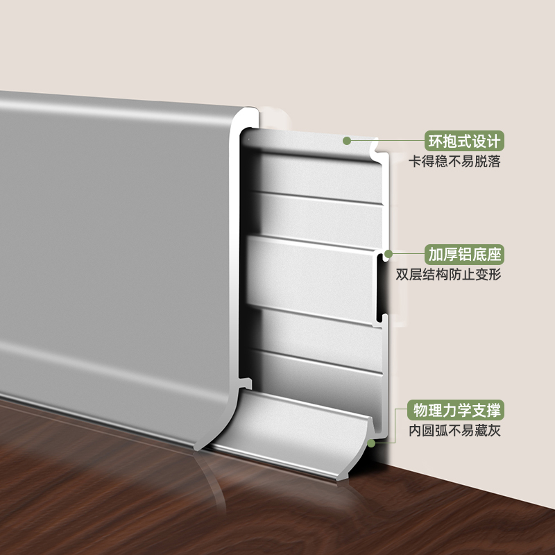 卡扣式 踢脚线超薄铝合金实木地板金属地脚线4cm6公分不锈钢踢脚板