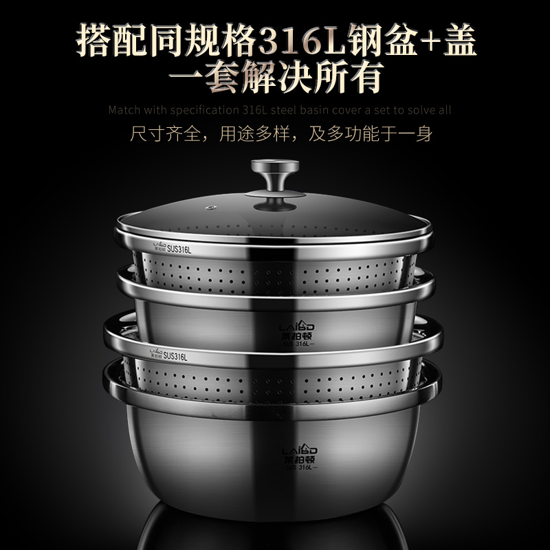食品级特厚不锈钢盆带盖套装 洗菜盆家用厨房打蛋和面料理汤大盆