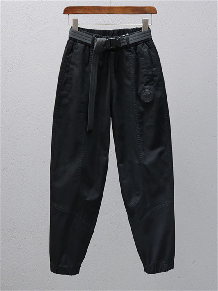 清仓捡漏品牌折扣纯棉白色休闲裤 子女小个子松紧腰束脚萝卜哈伦裤