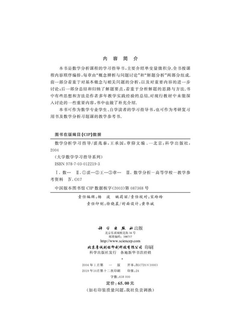 裘兆泰 王承国 科学出版 包邮 社 大学数学学习指导系列 数学分析学习指导 科学版 现货 章仰文