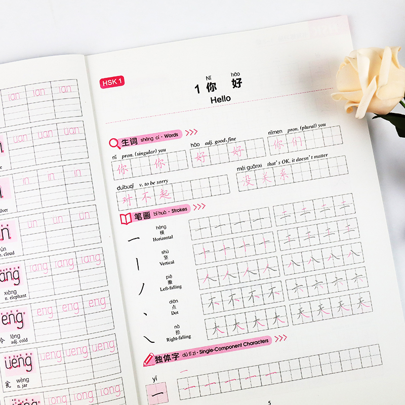 HSK对外汉语教学书写练习册中文英文互译钢笔硬笔墨点练字帖外国人学写中国字教材礼物HSK教程1 6级双语字帖