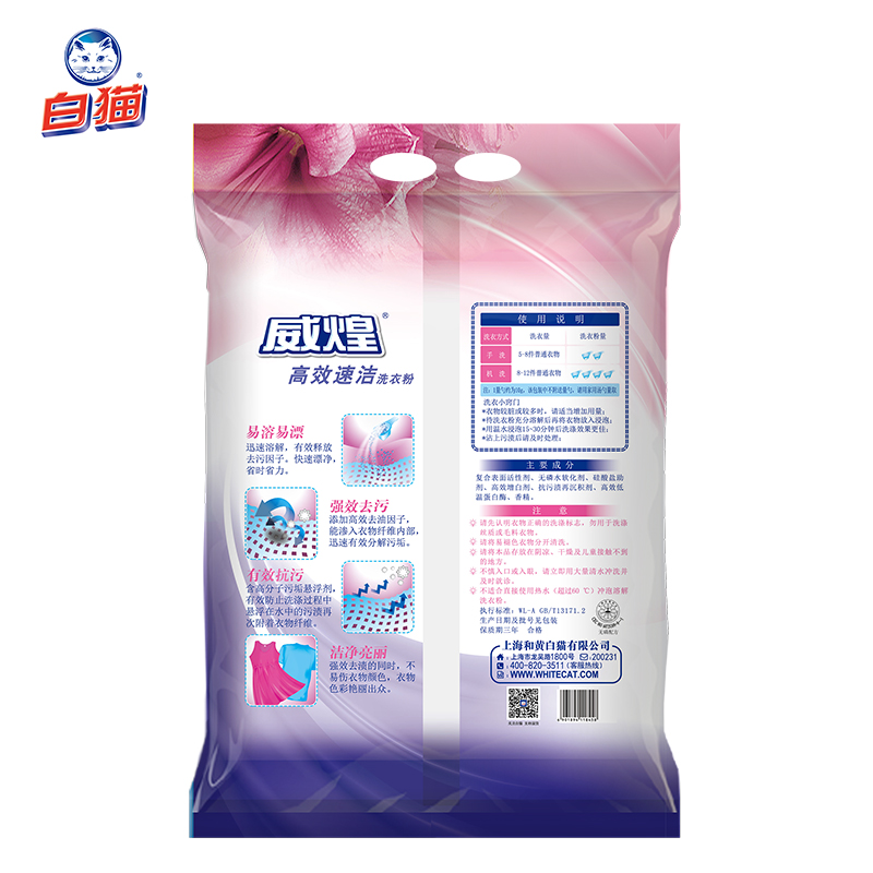 白猫威煌高效速洁洗衣粉5kg 2袋洁净皂粉油污色渍去污易溶易漂