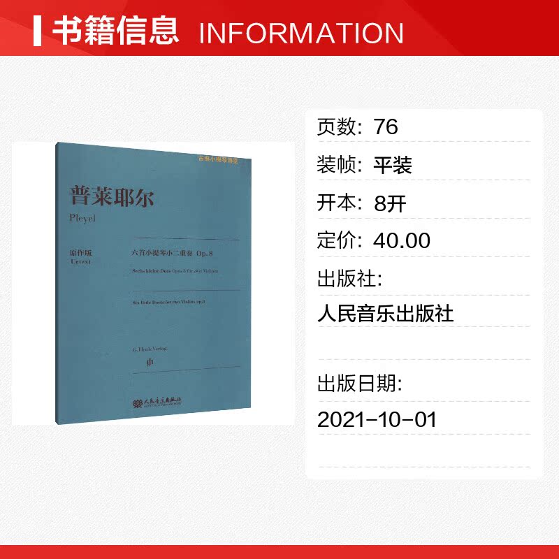音乐 图书籍 原作版 新华书店正版 艺术 新 译 社 人民音乐出版 Op.8 普莱耶尔六首小提琴小二重奏