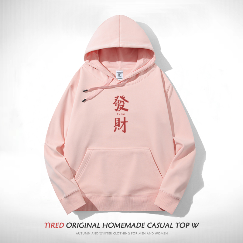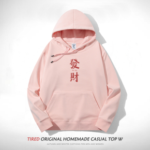 国潮字母刺绣玫红色卫衣连帽潮牌男女oversize情侣外套2025秋新款