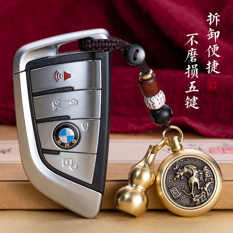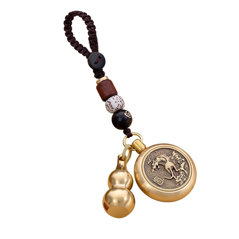 黄铜十二生肖汽车钥匙扣男女士旋转手把件电动摩托车钥匙链挂饰$1