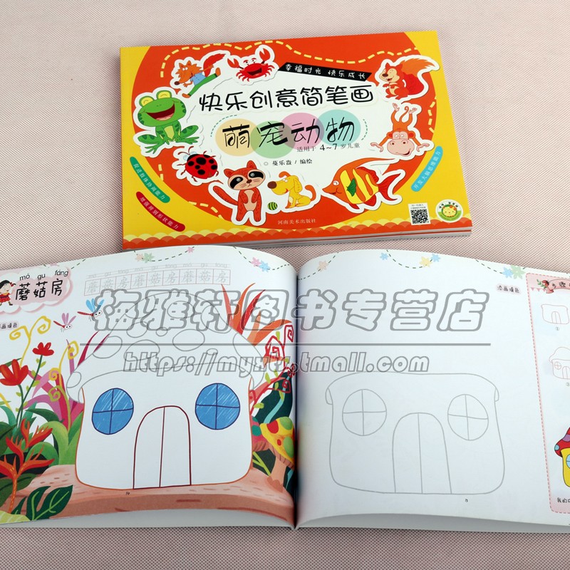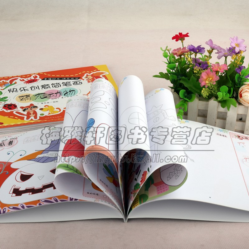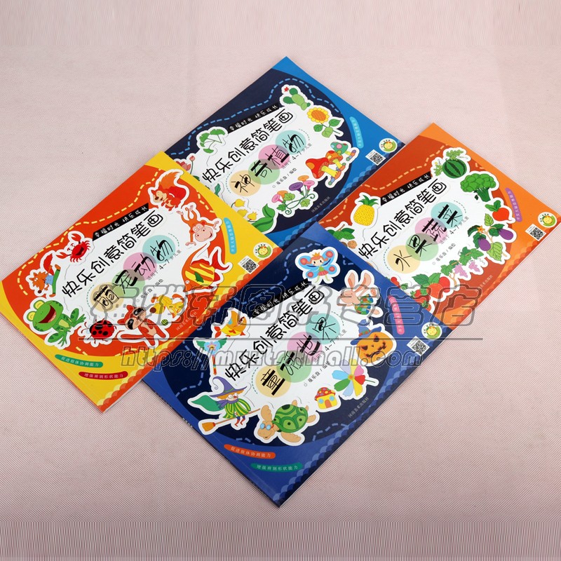 快乐创意简笔画全套4册少年儿童4 7岁绘画涂色书幼儿智力艺术启蒙认知力锻炼创意手工简笔画绘画技法学前教育教学参考资料河南美术