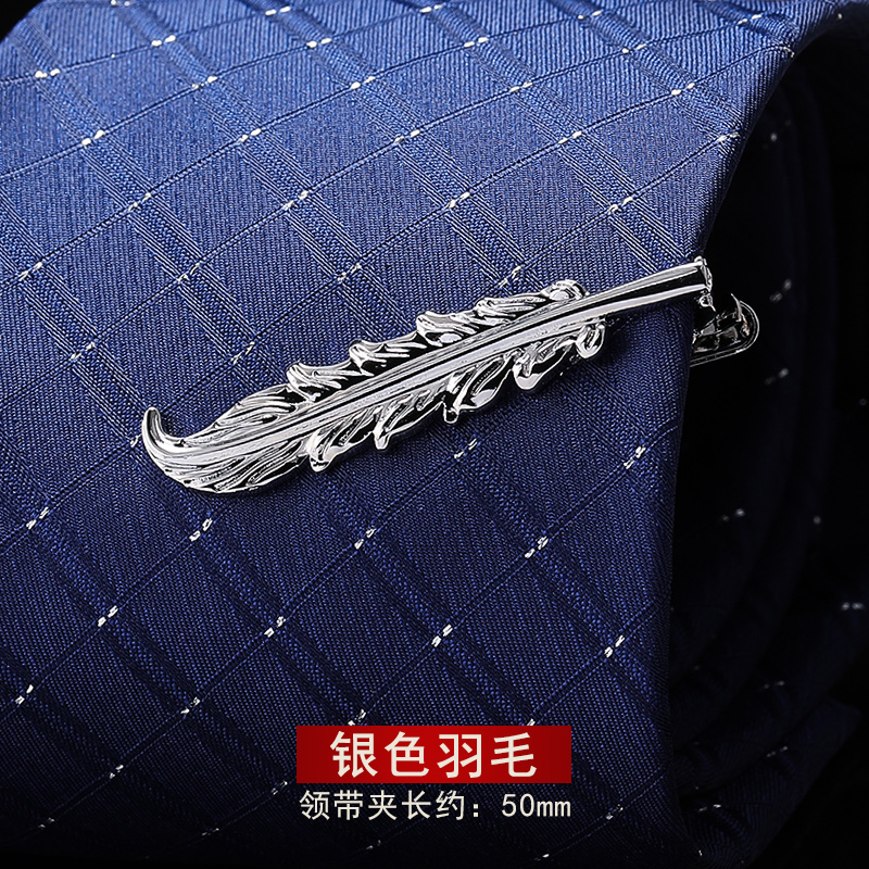 保安领夹银色羽毛领带夹 韩版 男士 简约银色气质领带夹男女别针时尚