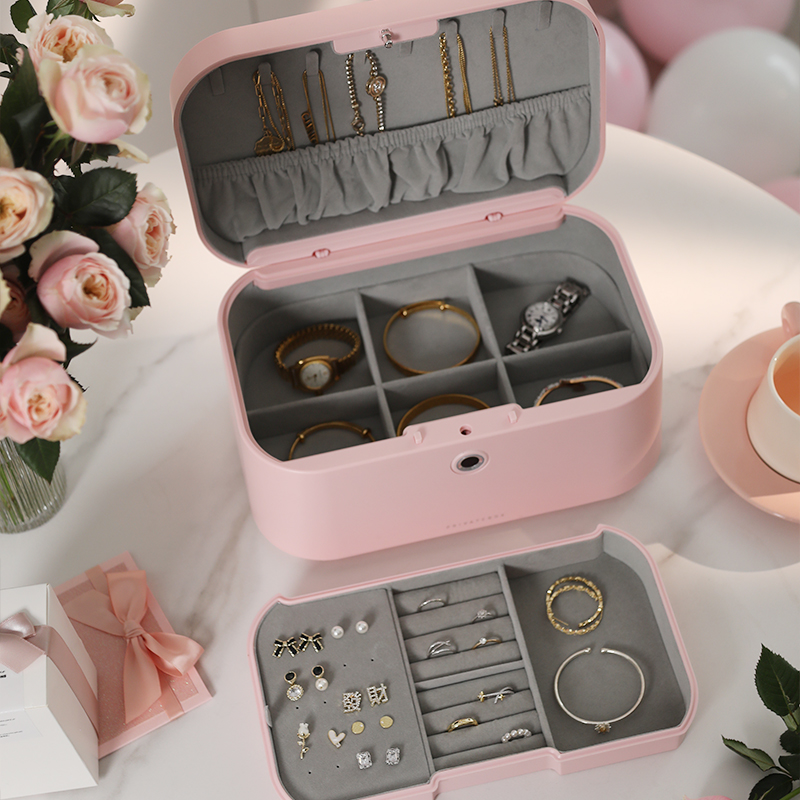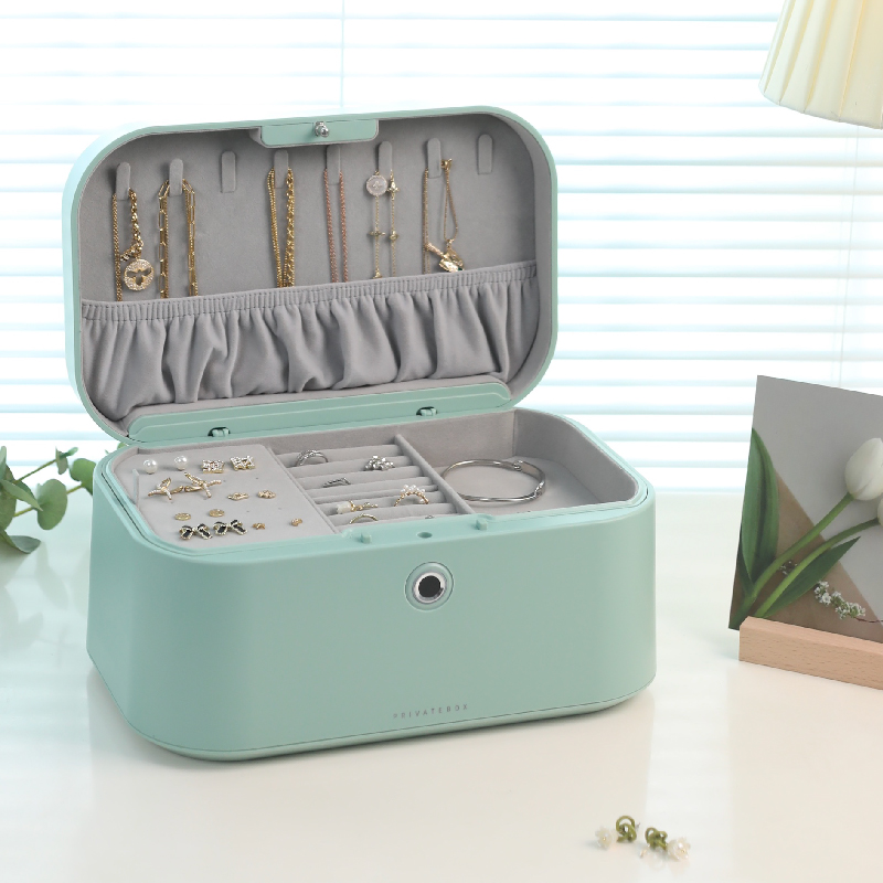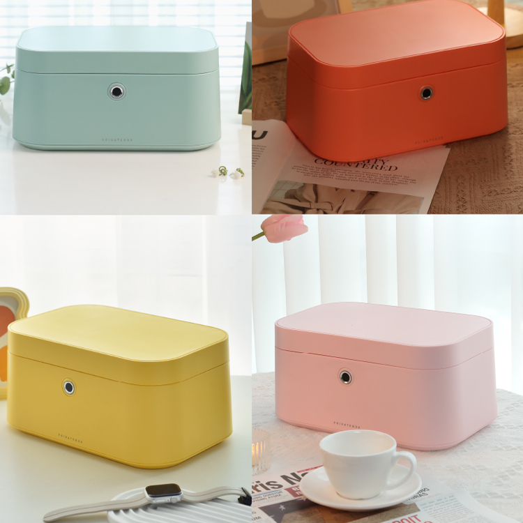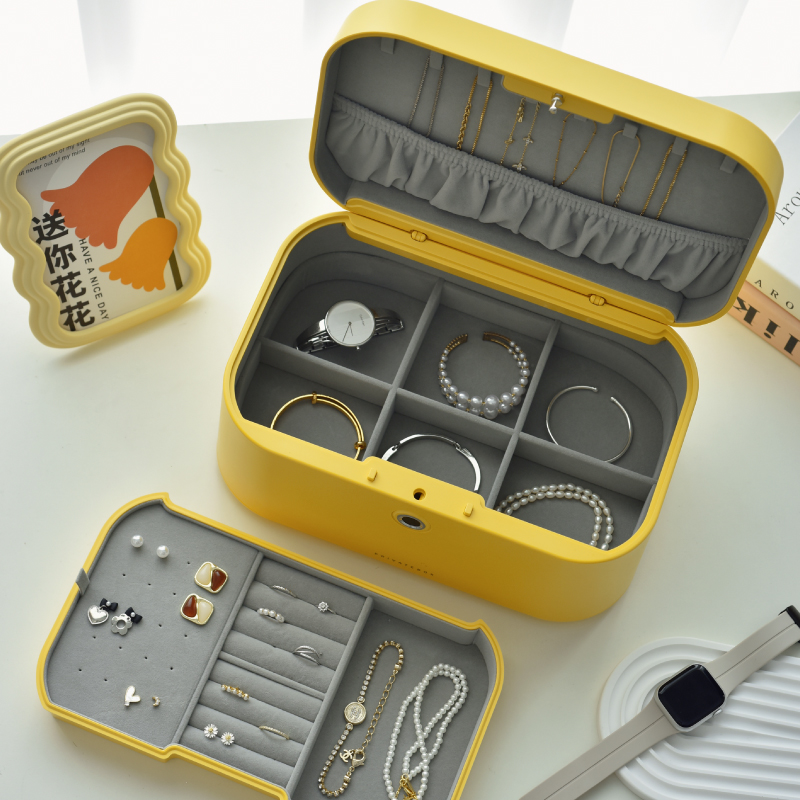 神指宝盒首饰盒指纹密码 盒耳环双层项链戒指黄金收纳盒小型入柜迷你床头柜证件平板收纳保险箱学生家用保险柜