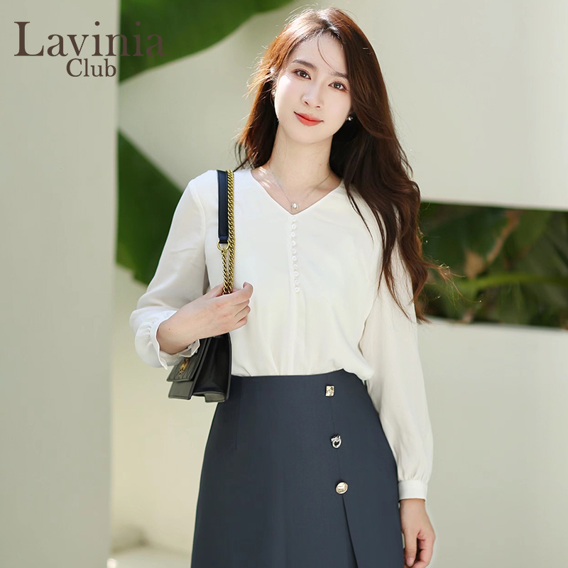 春秋新款 女士长袖 设计感气质衬衣上衣 子衬衫 betu百图复古英伦风格